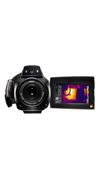 Тепловизор Тесто 885 в удобном дизайне видеокамеры с вращающейся рукояткой и откидным дисплеем, детектором с высокой разрешающей способностью, с температурной чувствительностью < 30 мК, стандартным широкоугольным объективом (30°), встроенной цифровой камерой с мощной светодиодной подсветкой, функцией записи голосовых комментариев посредством гарнитуры, возможностью отображения распределения поверхностной влажности и опцией измерения высоких температур – всё необходимое для профессиональной термографии.