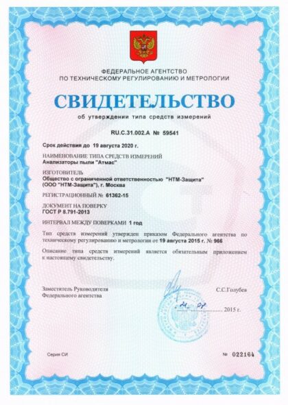Прибор для измерения массовых концентраций аэрозольных частиц (пыли) в воздухе рабочей зоны. Измеритель АтМАС внесвен в Госреестр СИ РФ и поставляется с первичной поверкой.