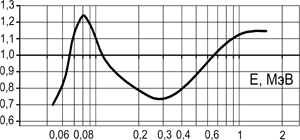 Энергетическая зависимость чувствительности относительно энергии 662 кэВ± 30 %