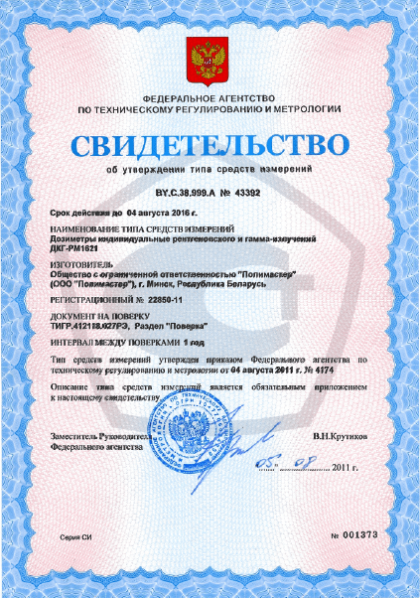 - дозиметр индивидуальный рентгеновского и гамма-излучений ДКГ-РМ1621МА (отличается от дозиметра ДКГ-РМ1621 расширенным диапазоном измерений МЭД, наличием режима поиска и встроенной вибрационной и световой сигнализации).
