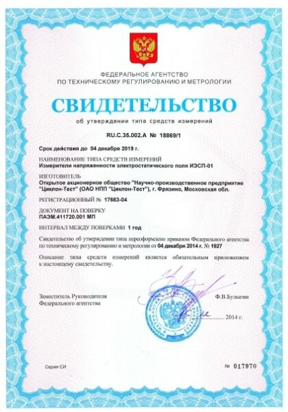 Измеритель электростатического поля ИЭСП-01 с поверкой