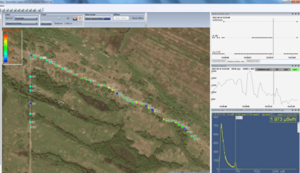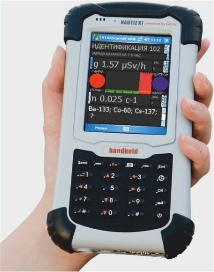 Типы идентифицированных раионуклидов отображаются на экране КПК и одновременно сообщаются оператору через беспроводную гарнитуру. Результаты сканирования непрерывно фиксируются в памяти КПК для последующей обработки и анализа на персональном компьютере и могут быть нанесены на карту местности с помощью прикладного программного обеспечения.