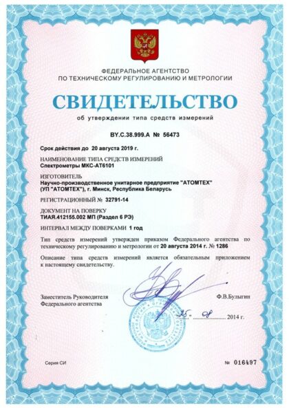 Спектрометр МКС-АТ6101С соответствует требованиям МАГАТЭ (Технические и функциональные требования для аппаратуры пограничного контроля).