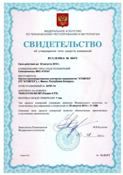 Назначение спектрометра МКС-АТ6101 с поверкой: