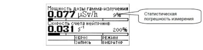 - Звуковая и визуальная сигнализация при идентификации гамма-излучающих радионуклидов и при превышении пороговых уровней по мощности дозы, плотности потока, скорости счета;