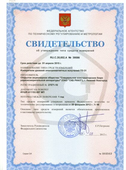 - измерения плотности потока энергии электромагнитного поля в частотном диапазоне 0,3 – 40 ГГц;