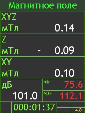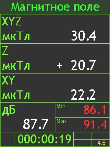 Измерительный модуль П3-81-2 (мТл), подключаемый к измерительным приборам семейства “Октава” / “Экофизика”, предназначен для измерения постоянного магнитного поля (выдает цифровые значения напряженности магнитного поля в трех направлениях, модуль вектора напряженности, значение напряженности МП на частоте 50 Гц).