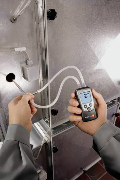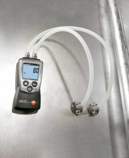 Данные могут отображаться в Паскалях по всему диапазону измерений. Магниты на задней части корпуса позволяют работать, не держа прибор в руках. Благодаря подсветке дисплея значения измерений с легкостью считываются, даже в условиях недостаточного освещения. В сочетании с трубкой Пито Тесто 510 может измерять скорость потока воздуха. Компенсация плотности воздуха позволяет получить более точные результаты измерений.