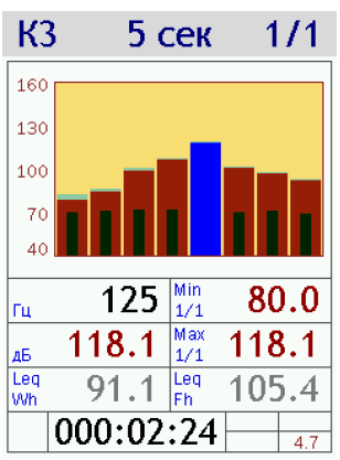 1/3-октавы: 0,8 Гц – 160 Гц;